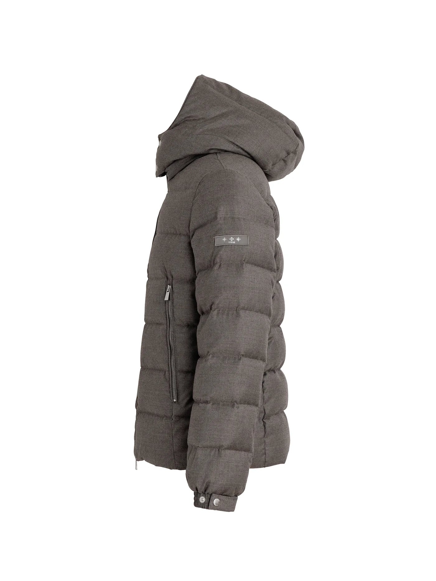 Un classico Tatras reinterpretato: piumino con cappuccio a collo alto che protegge fino al mento. Dettagli metallici su zip e bottoni aggiungono un tono deciso e contemporaneo, mentre le tasche con zip custodiscono al sicuro piccoli oggetti. Le fodere interne in tessuto caldo trasformano le tasche in pratici scaldamani. Il tessuto in lana conferisce un aspetto sobrio e lussuoso, ideale da indossare anche su completi sartoriali grazie alla lunghezza leggermente maggiore. Un capo trasversale, perfetto dal business al tempo libero.